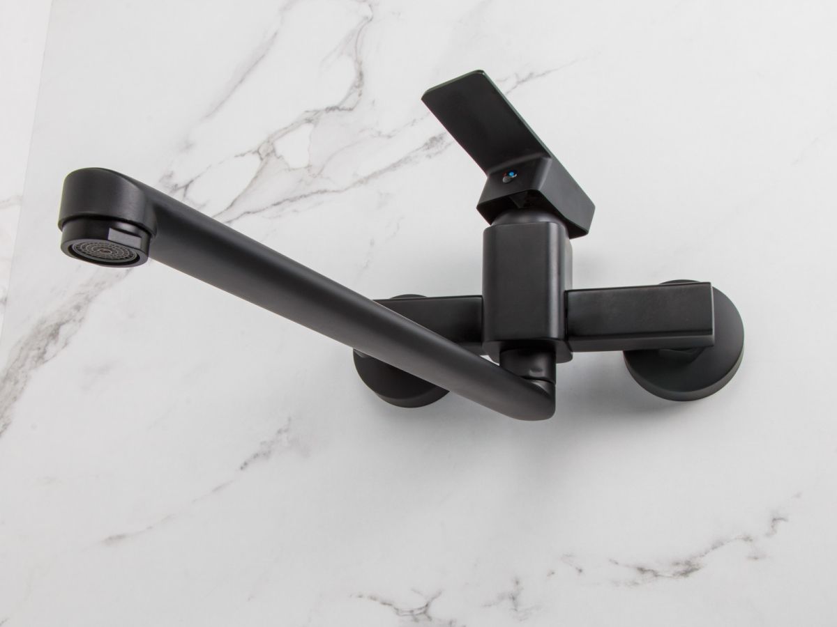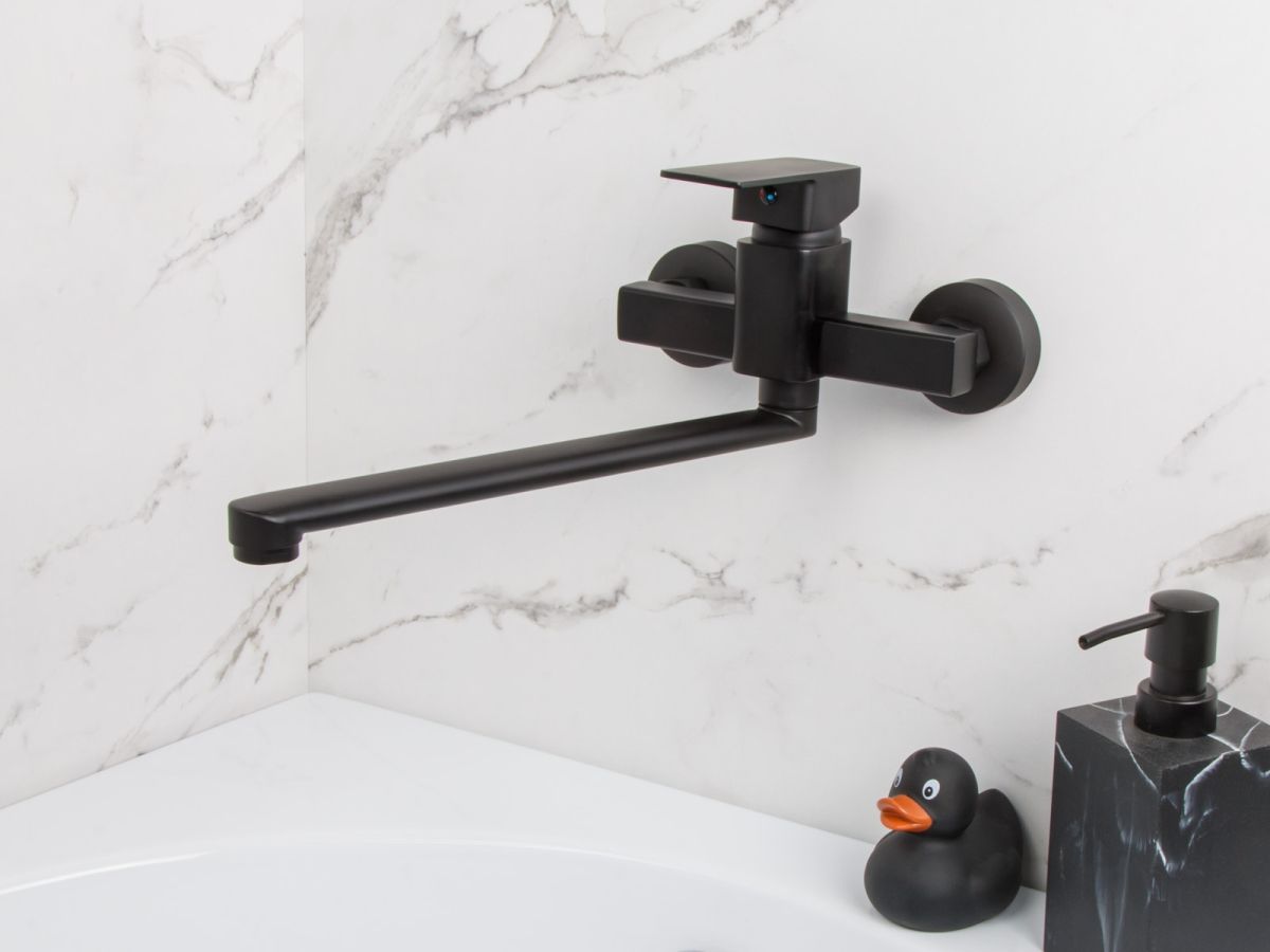 Смеситель для ванны D35-A, серия 210 черный ECONOCE (Длинный L-излив, длина 300 мм,, нет лейки, нет шланга, поворотный) EC0216BL