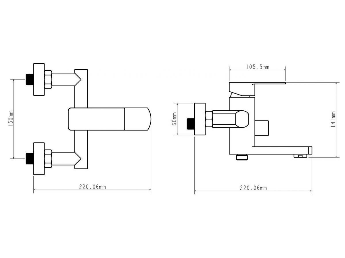 Смеситель для ванны D35-A, серия 210 черный ECONOCE (Короткий L-излив, длина 220 мм, лейка и шланг в комплекте, поворотный) EC0214BL