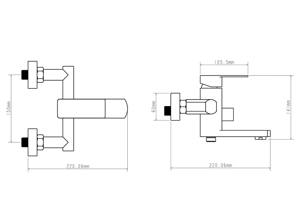 Смеситель для ванны D35-A, серия 210 ECONOCE (Короткий L-излив, длина 220 мм, лейка и шланг в комплекте, поворотный) EC0214