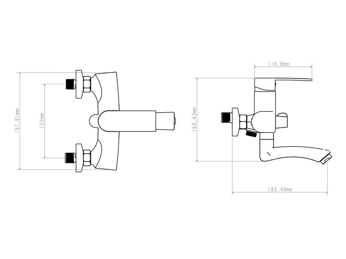 Смеситель для ванны D35-A, серия 270 черный, ECONOCE (Короткий L-излив, длина 193 мм, лейка и шланг в комплекте, поворотный) EC0271BL