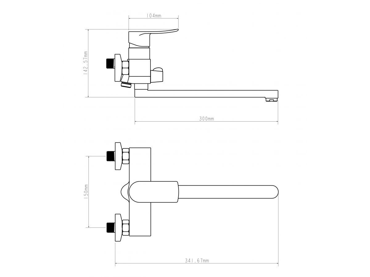 Смеситель для ванны D35-A, серия 280 белый, ECONOCE (Длинный L-излив, длина 350 мм, лейка и шланг в комплекте, поворотный) EC0282WT