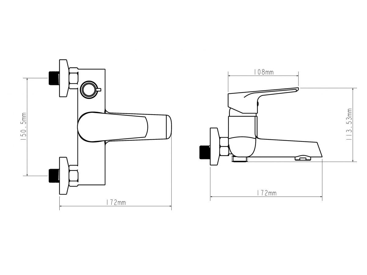 Смеситель для ванны D35-A, серия 280 белый, ECONOCE (Короткий излив, длина 166 мм, лейка и шланг в комплекте, монолитный) EC0281WT