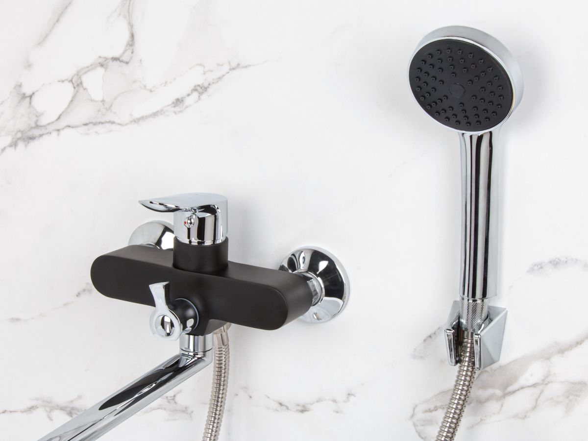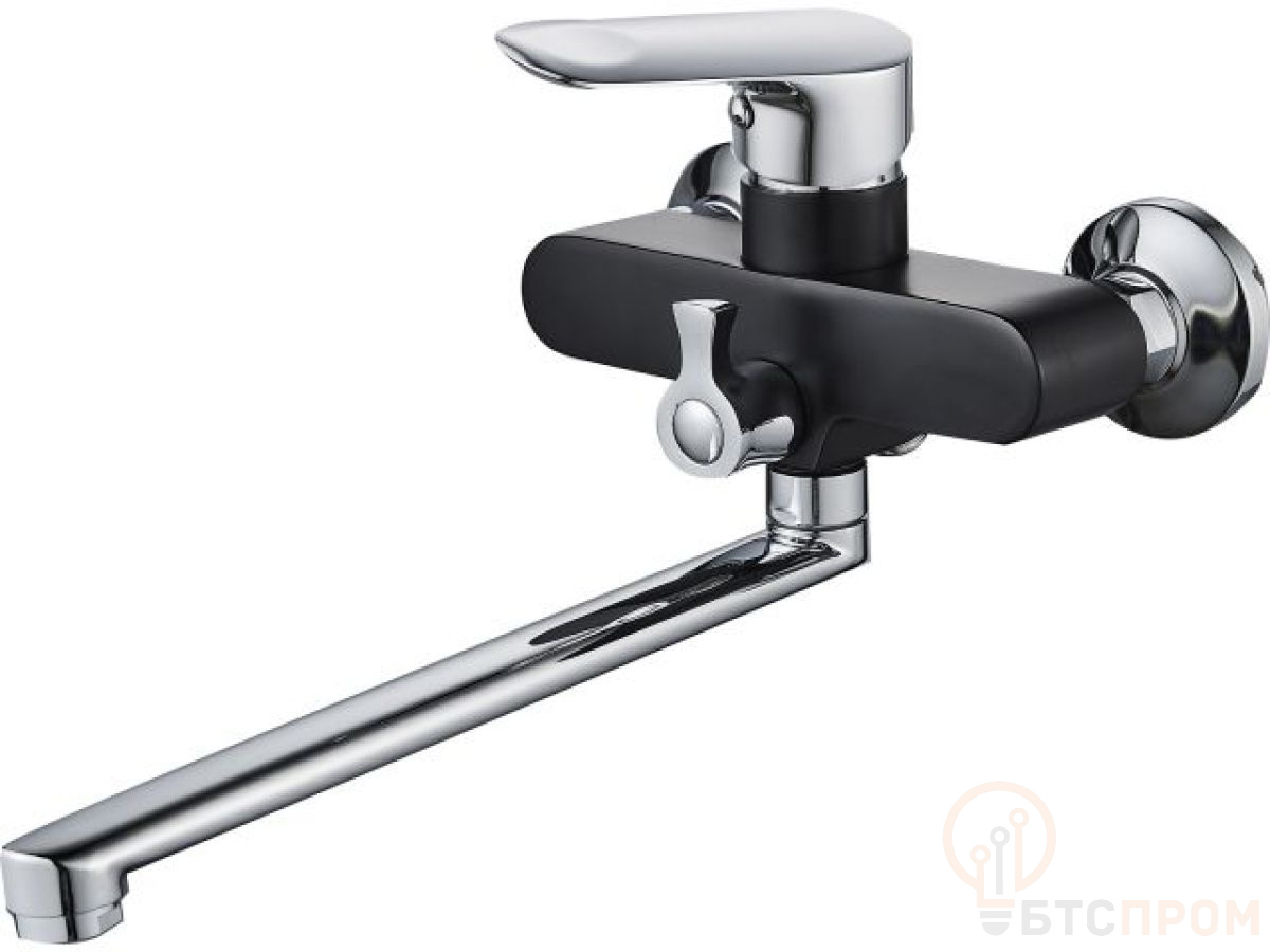 Смеситель для ванны D35-A, серия 280 черный, ECONOCE (Длинный L-излив, длина 350 мм, лейка и шланг в комплекте, поворотный) EC0282BL