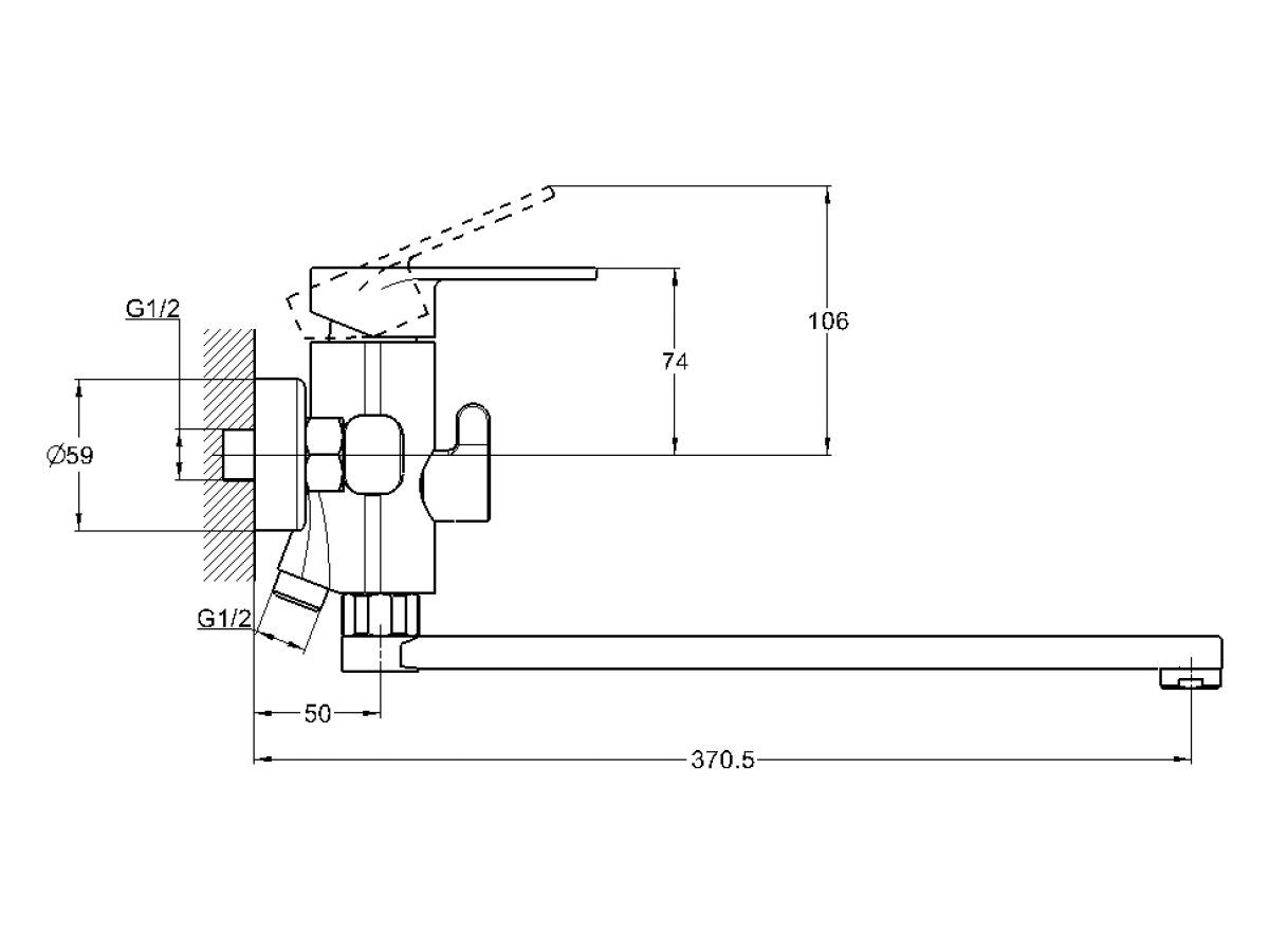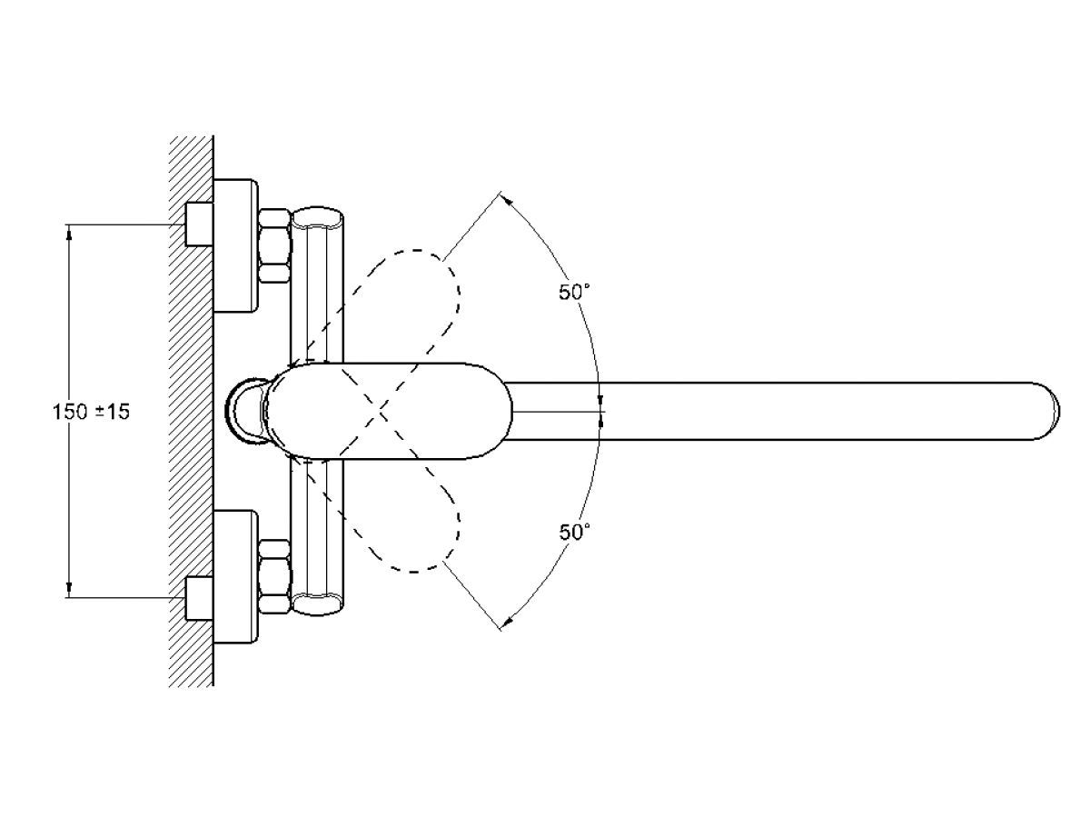 Угол поворота рукоятки гор.: 50°;