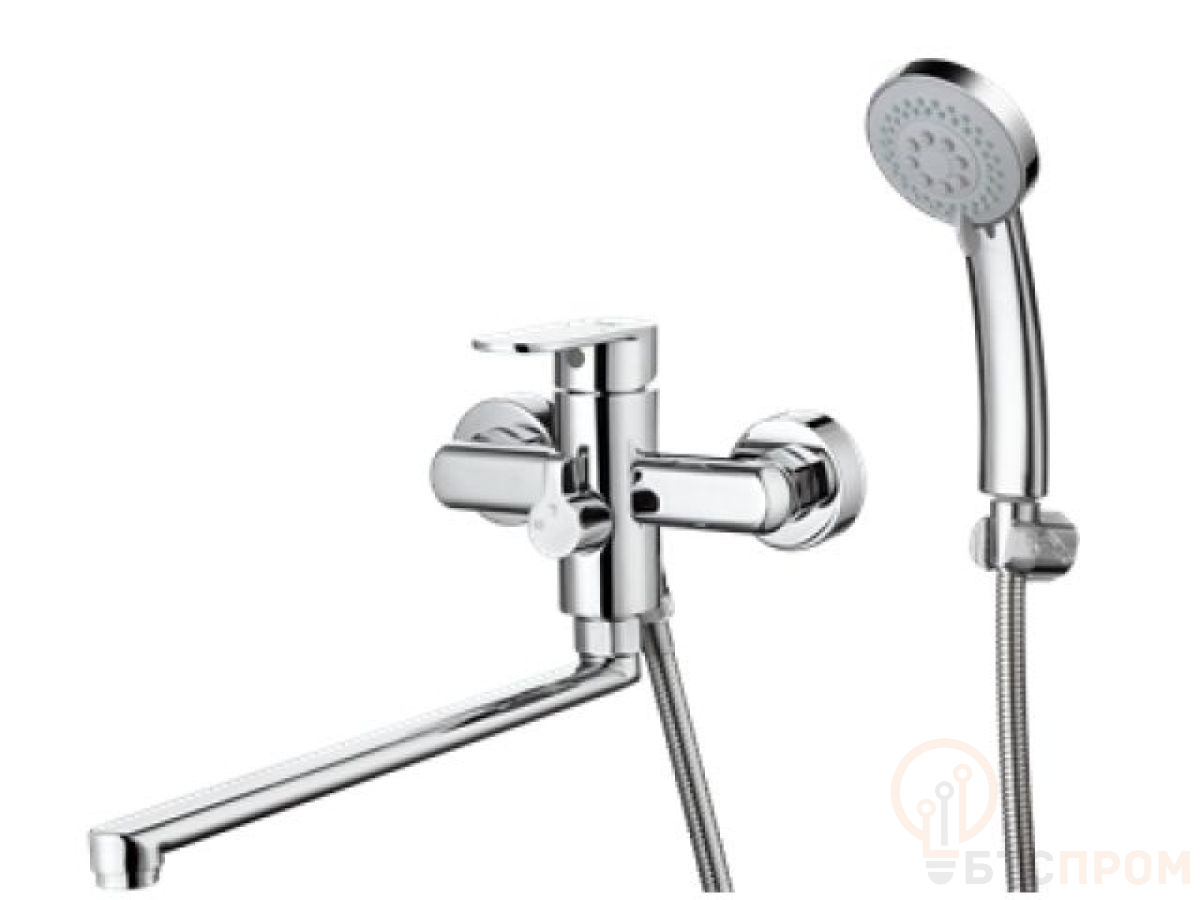 Смеситель для ванны D35-A, серия 390 ECONOCE (Длинный L-излив, длина 371 мм, лейка и шланг в комплекте, поворотный) EC0393