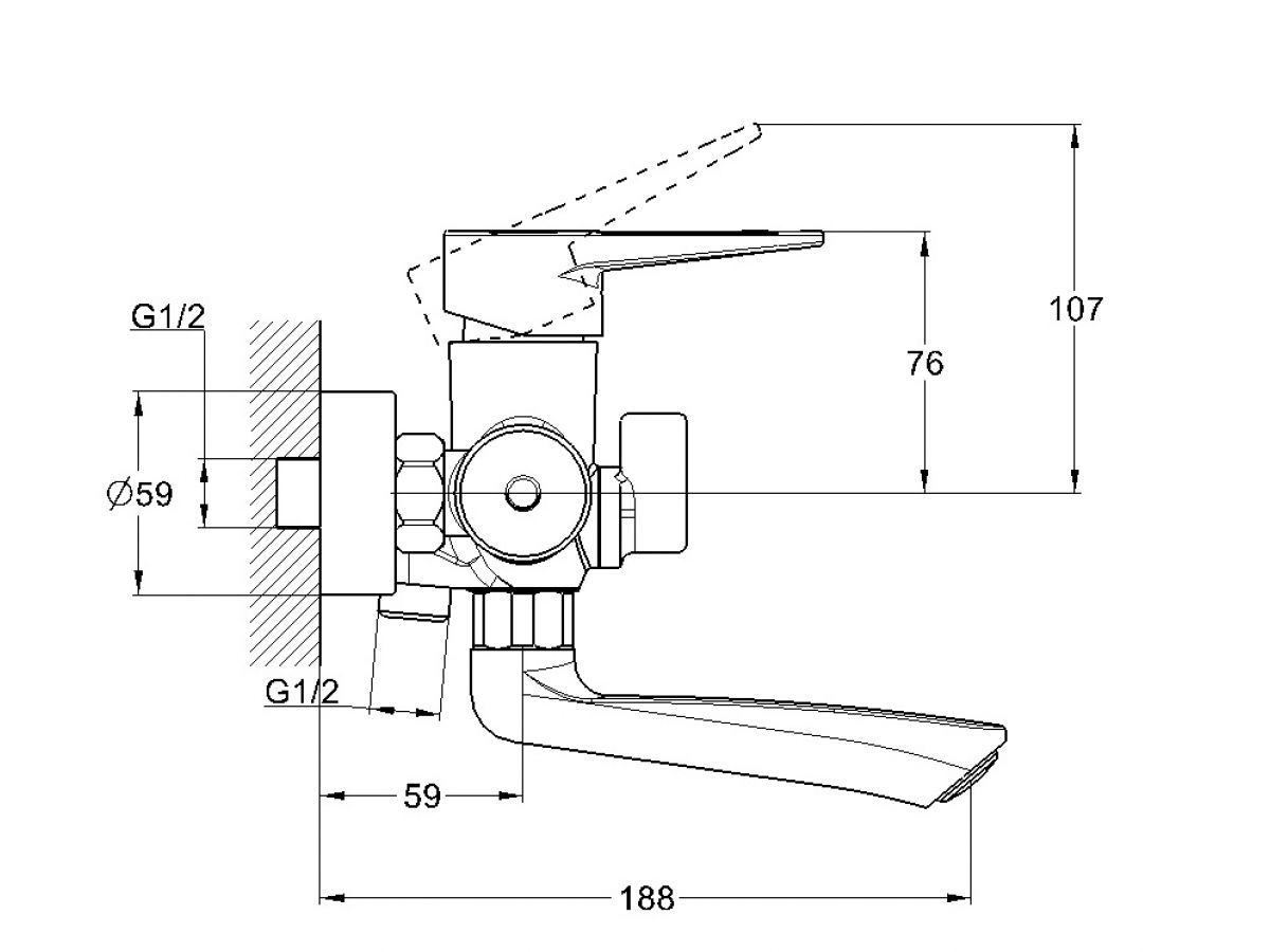 Смеситель для ванны D35-A, серия 400 ECONOCE (Короткий L-излив, длина 188 мм, лейка и шланг в комплекте, поворотный) EC0402