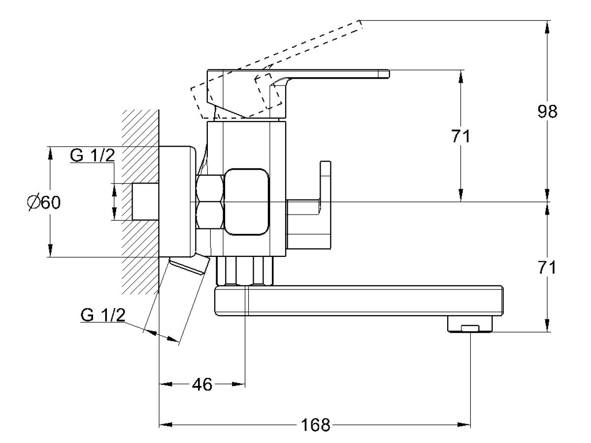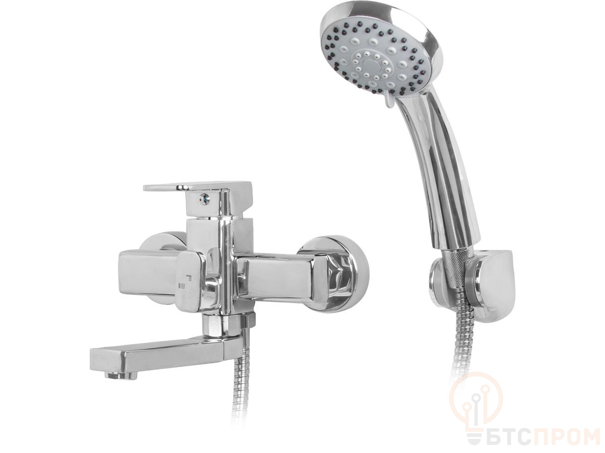 Смеситель для ванны D35-A, серия 590 ECONOCE (Короткий излив, длина 122 мм, лейка и шланг в комплекте, монолитный) EC0591