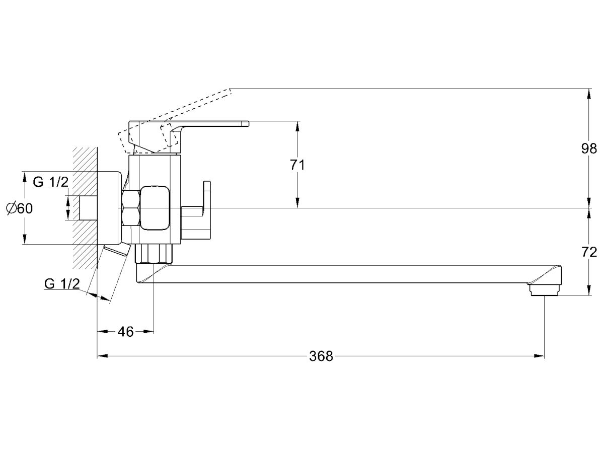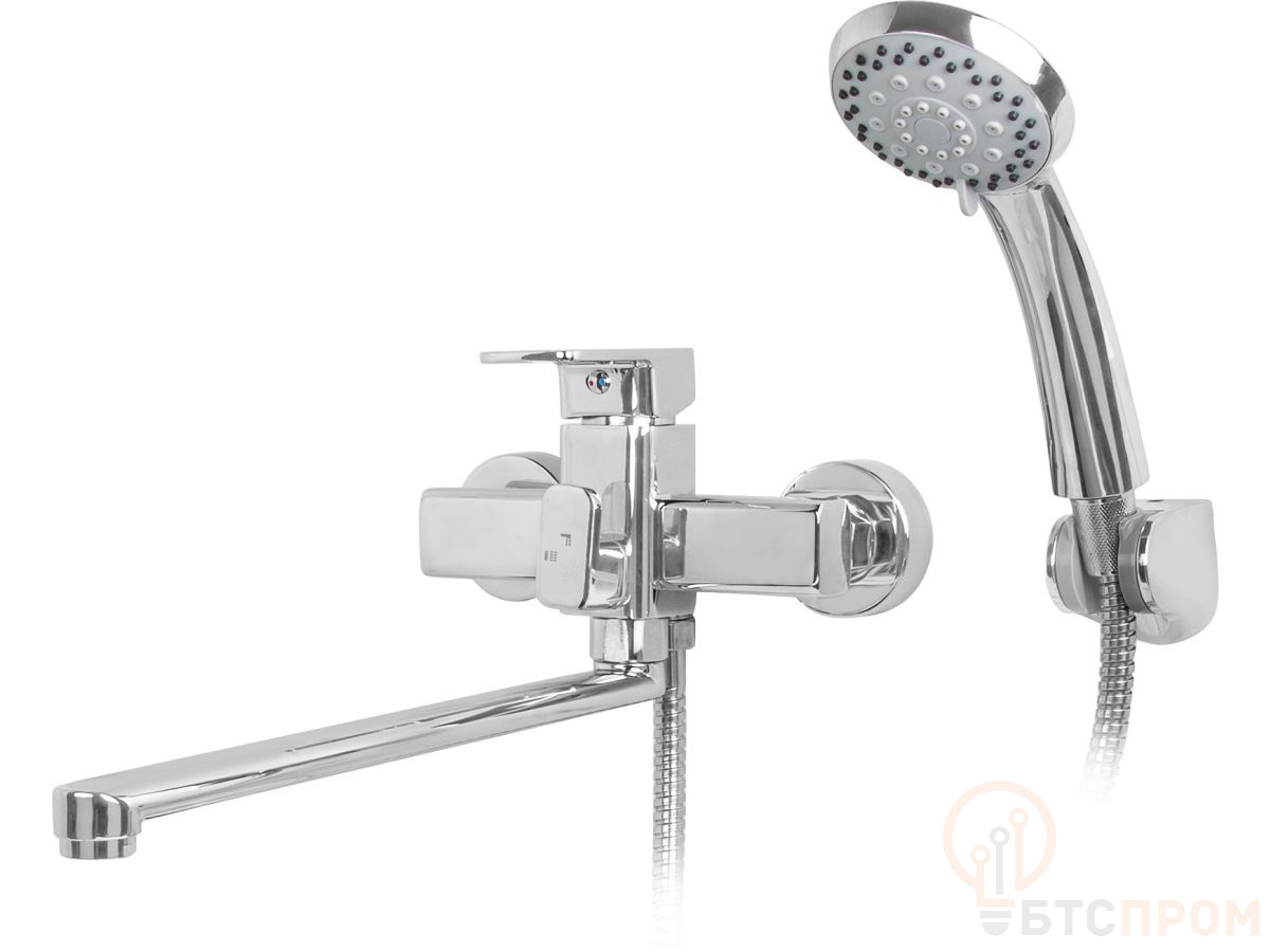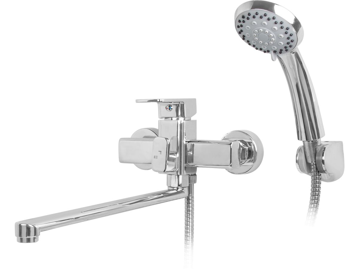 Смеситель для ванны D35-A, серия 590 ECONOCE (Длинный L-излив, длина 322 мм, лейка и шланг в комплекте, поворотный) EC0594