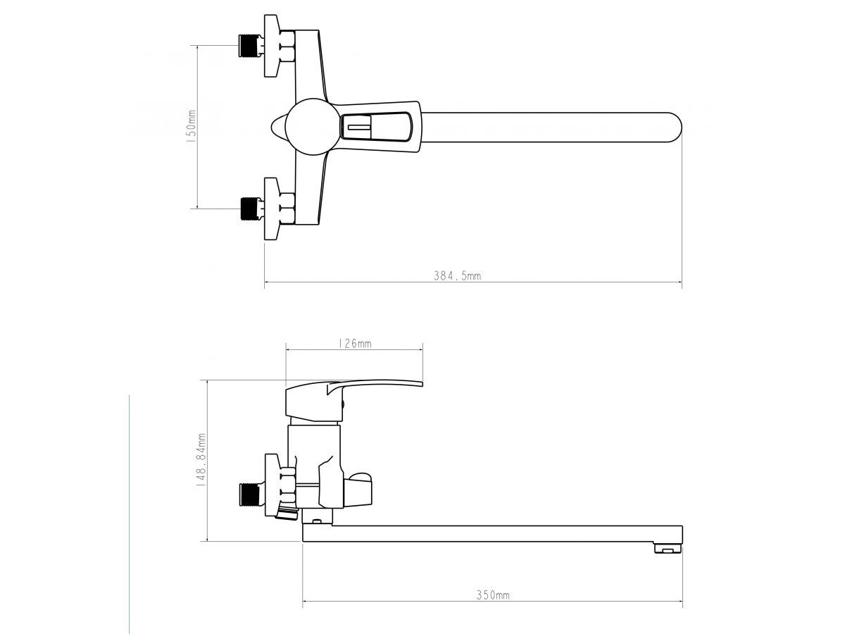 Смеситель для ванны D40-A, серия 320, ECONOCE (Длинный L-излив, длина 350 мм, лейка и шланг в комплекте, поворотный) EC0322