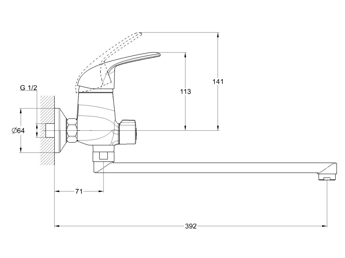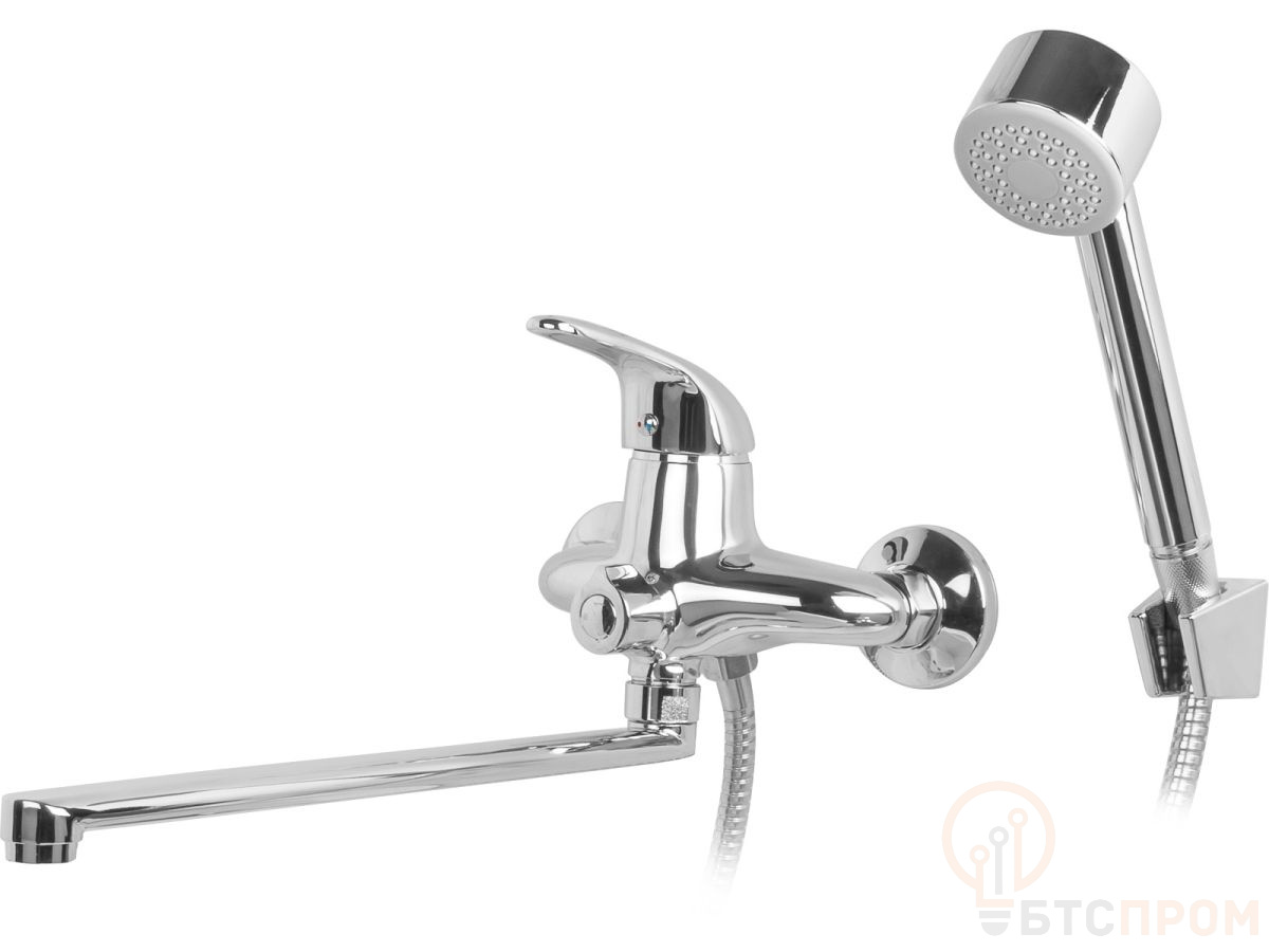 Смеситель для ванны D40-A, серия 360 ECONOCE (Длинный L-излив, длина 392 мм, лейка и шланг в комплекте, поворотный) EC0366