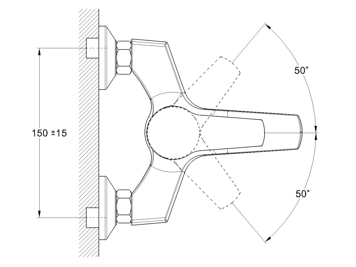 Угол поворота рукоятки гор.: 50°;