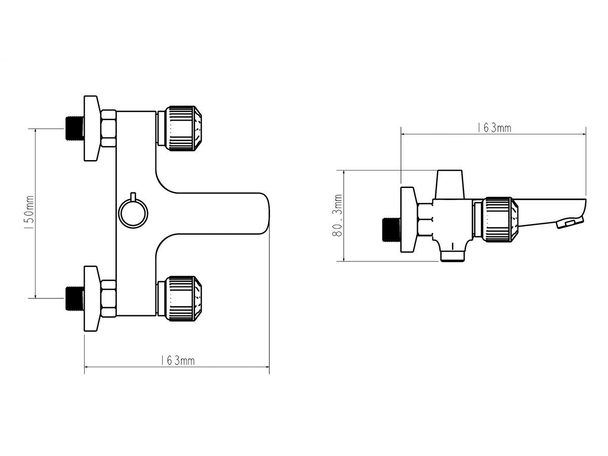 Смеситель для ванны вентильный (тип I), серия 330, ECONOCE (Короткий излив, длина 163 мм, лейка и шланг в комплекте, монолитный) EC0331