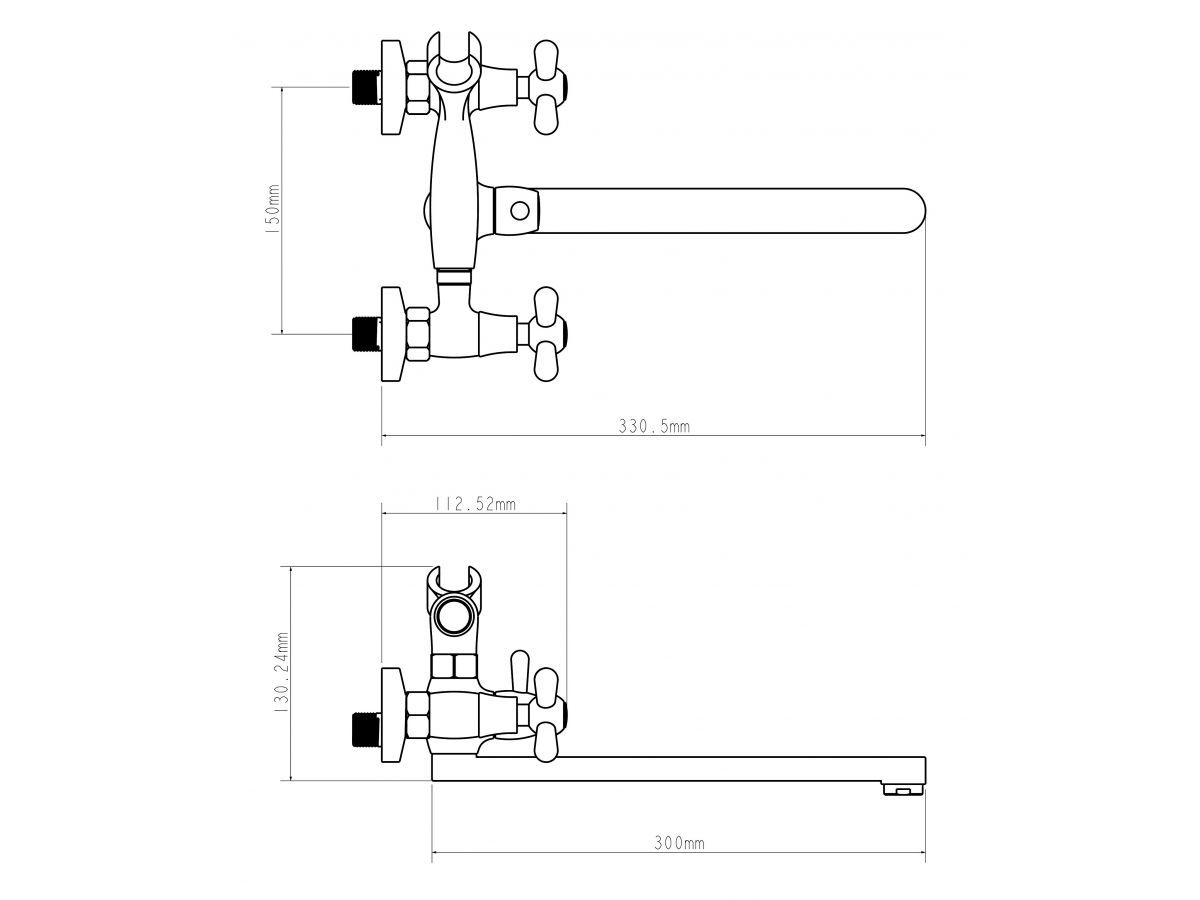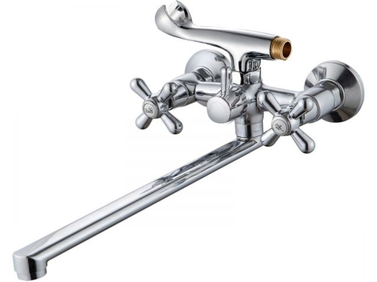 Смеситель для ванны вентильный (тип I), серия 340, ECONOCE (Длинный L-излив, длина 300 мм, лейка и шланг в комплекте, поворотный) EC0342