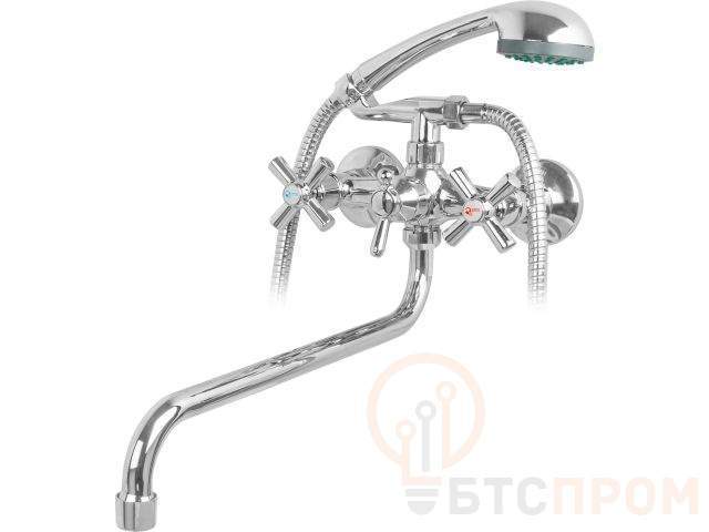 Смеситель для ванны вентильный (тип I), серия 410 ECONOCE (S-излив, длина 360 мм, лейка и шланг в комплекте, поворотный) EC0412