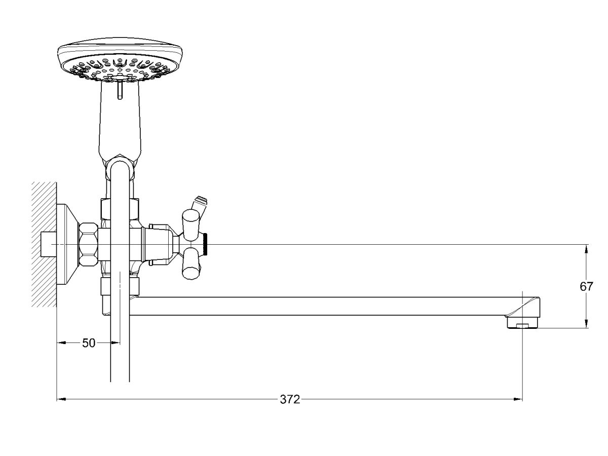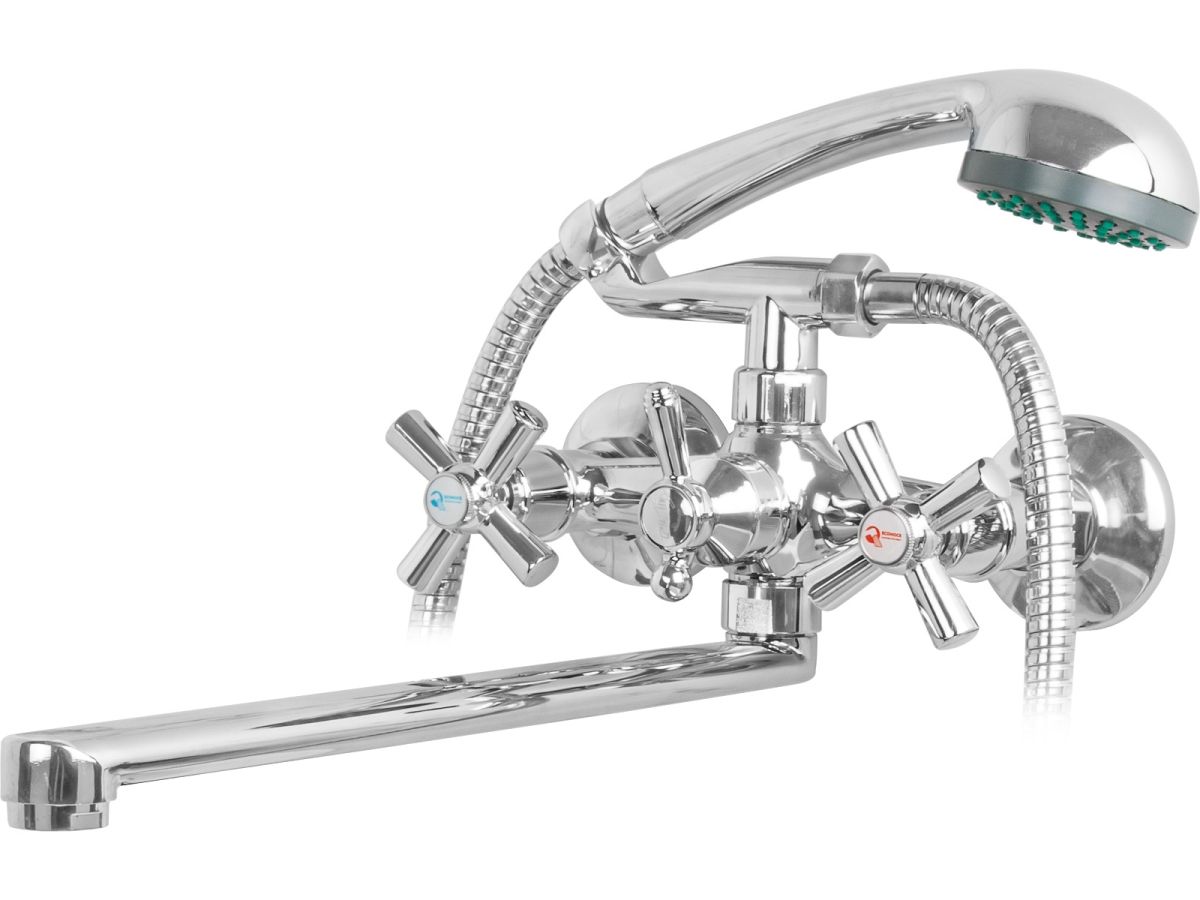 Смеситель для ванны вентильный (тип I), серия 410 ECONOCE (Короткий L-излив, длина 372 мм, лейка и шланг в комплекте, поворотный) EC0414