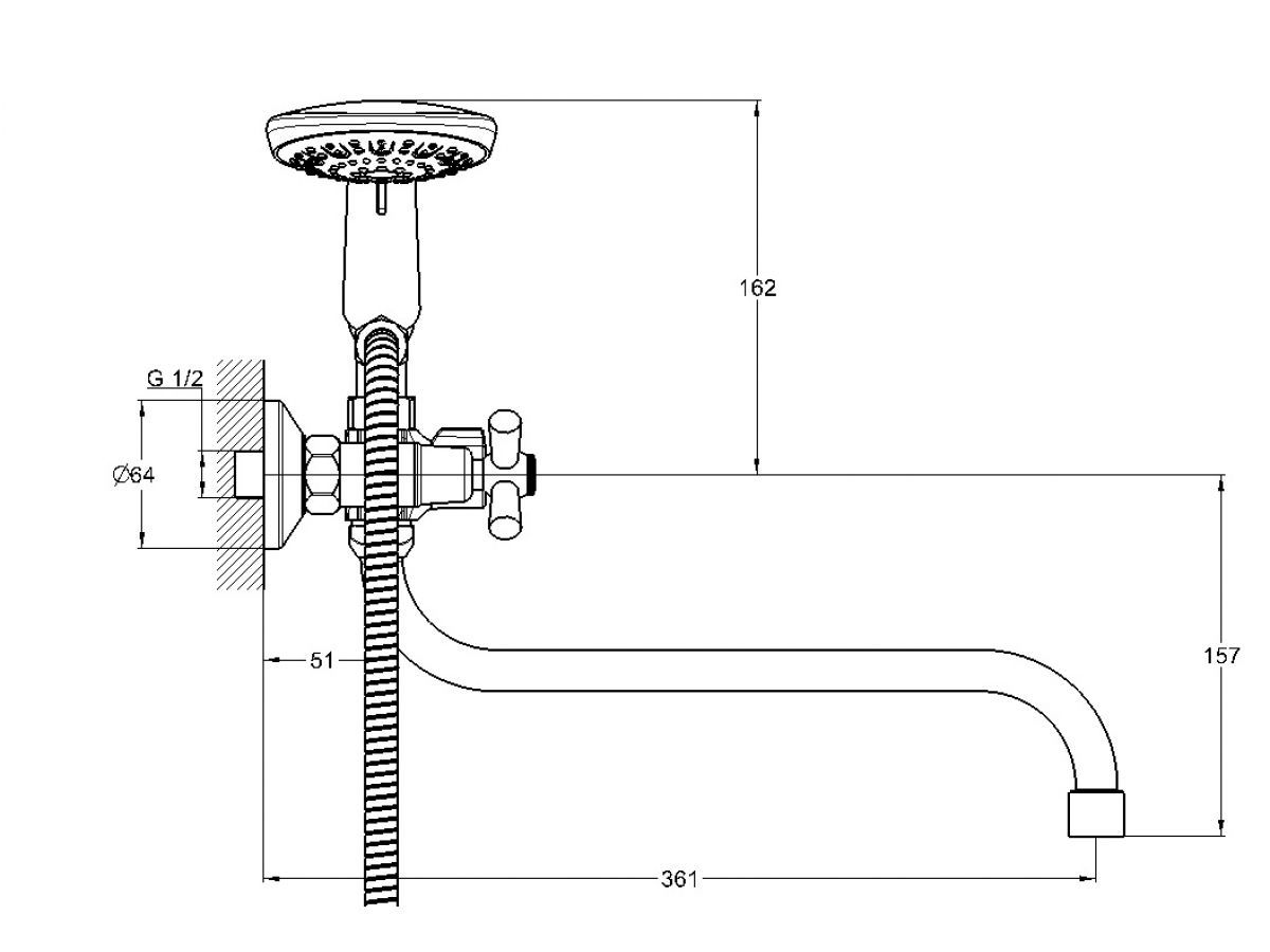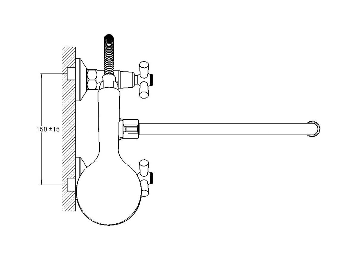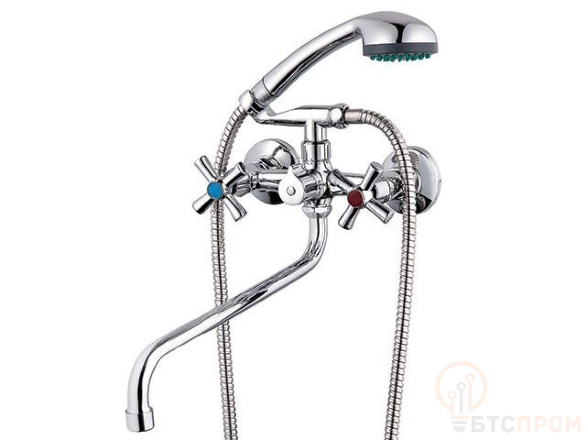 Смеситель для ванны вентильный (тип I), серия 420 ECONOCE (Длинный S-излив, длина 361 мм, лейка и шланг в комплекте, поворотный) EC0423