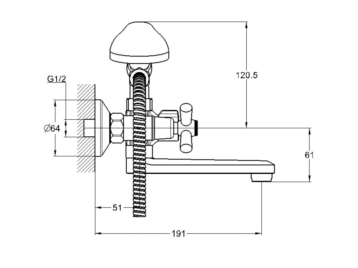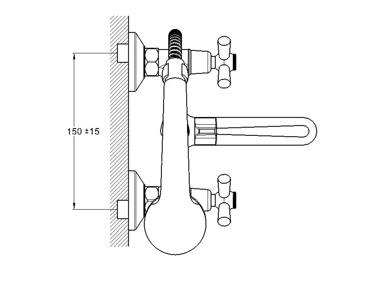 Смеситель для ванны вентильный (тип I), серия 420 ECONOCE (Короткий L-излив, длина 191 мм, лейка и шланг в комплекте, поворотный) EC0421