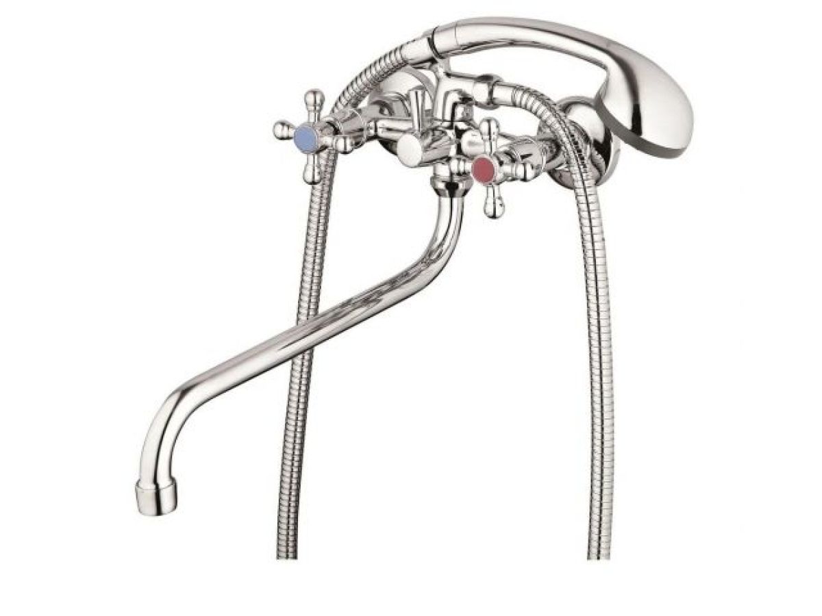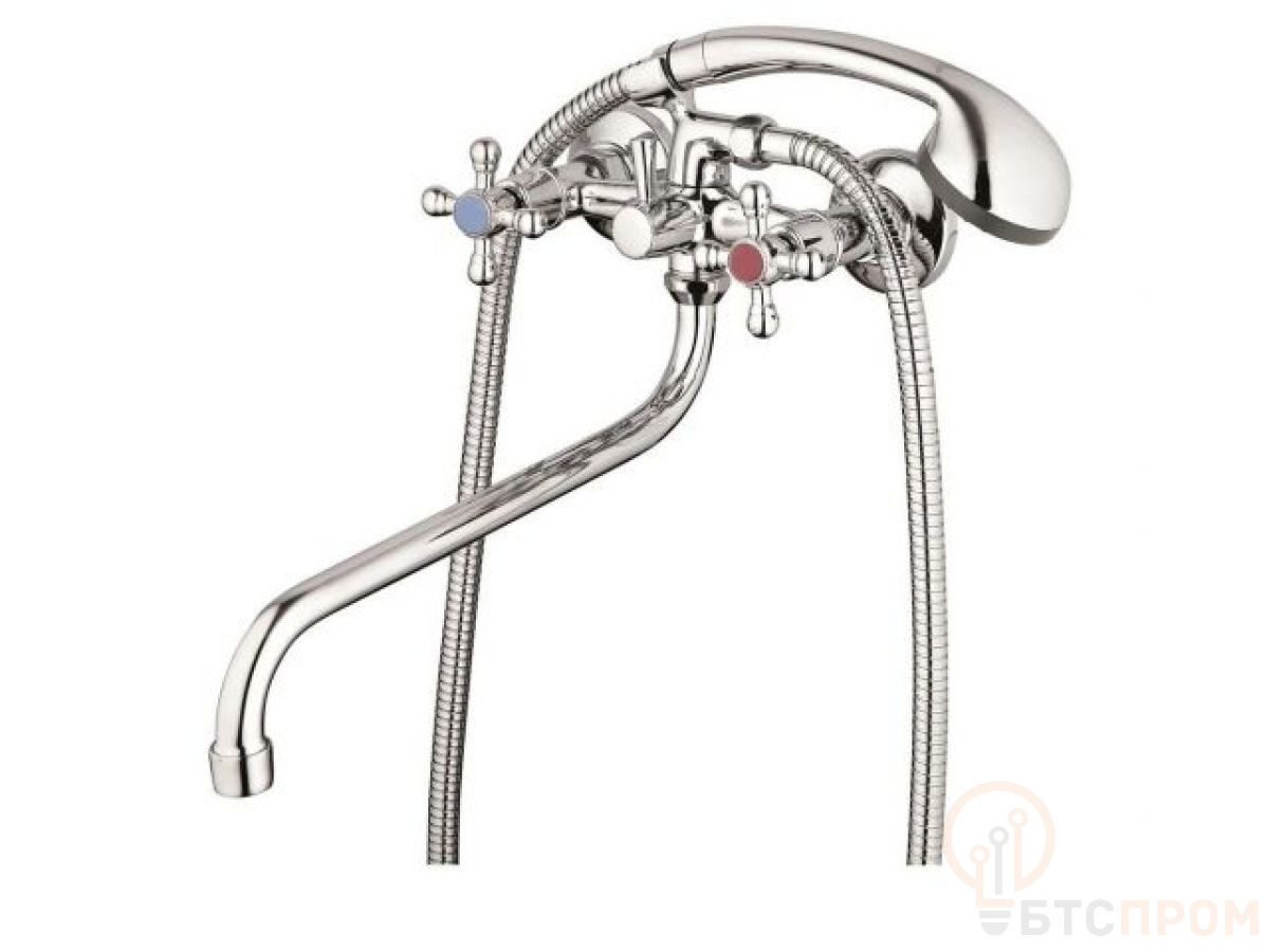 Смеситель для ванны вентильный (тип I), серия 480 ECONOCE (Матовый отражатель. Длинный L-излив. длина 360 мм, лейка и шланг в комплекте, поворотный) EC0480