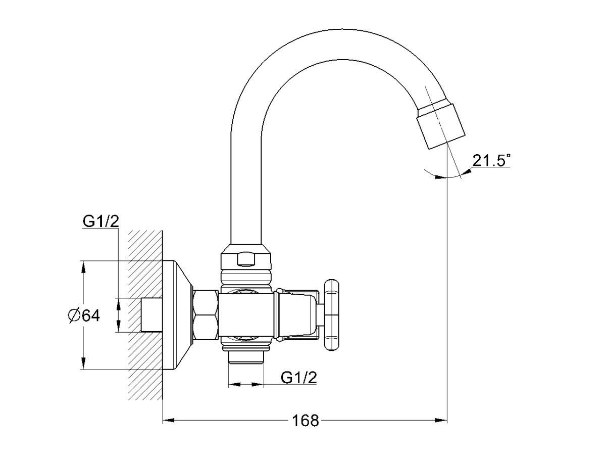 Смеситель для ванны вентильный (тип I), серия 600 ECONOCE (Длинный С-излив, длина 168 мм, лейка и шланг в комплекте, поворотный) EC0606