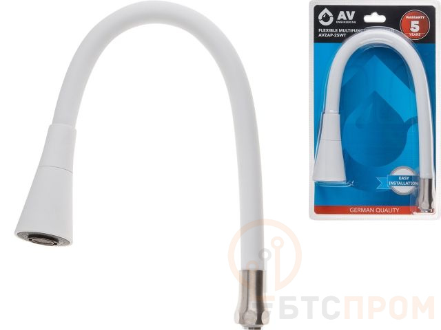 Излив гибкий с двухрежимной лейкой белый для смесителя, AV Engineering (Диаметр подключения 3/4") AVZAP-2SWT
