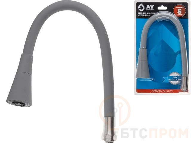 Излив гибкий с двухрежимной лейкой серый для смесителя, AV Engineering (Диаметр подключения 3/4") AVZAP-2SGR