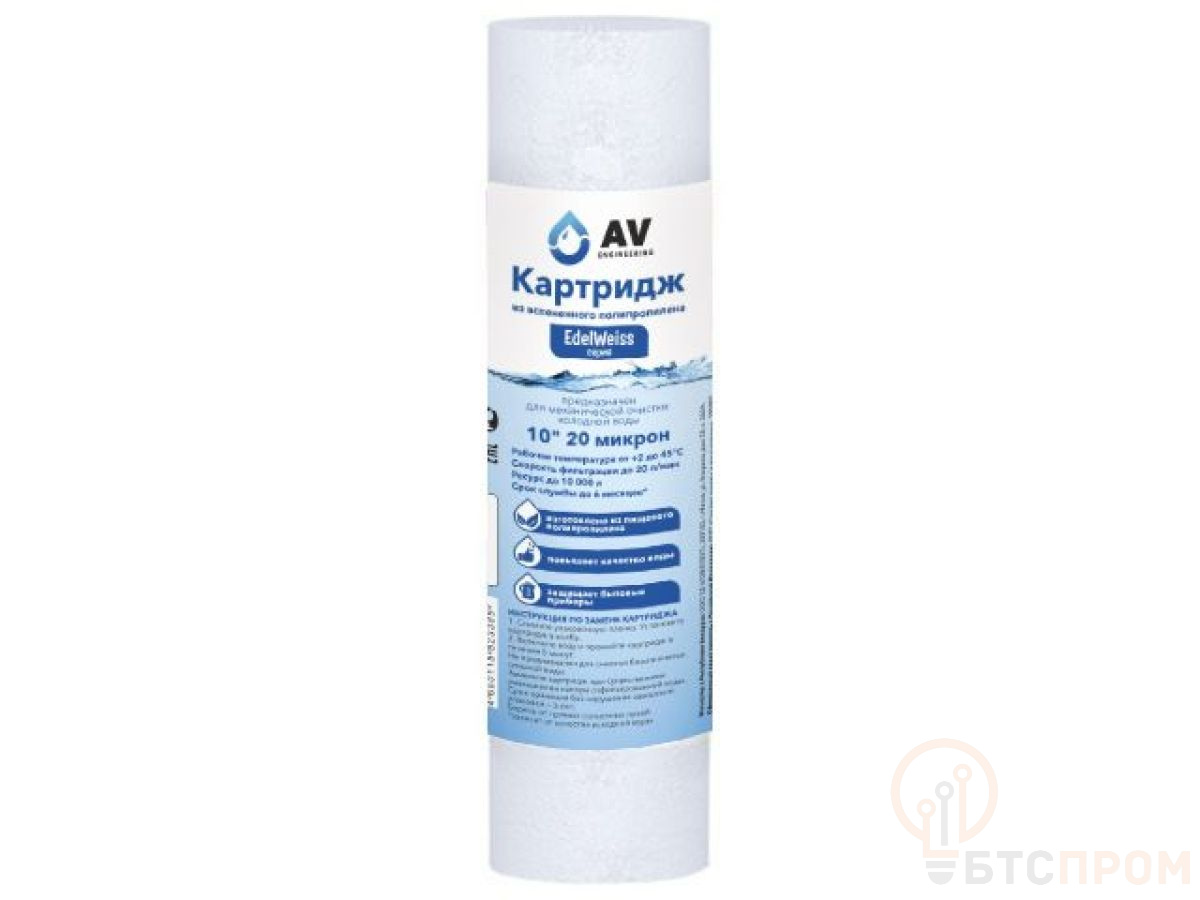 Картридж из вспененного полипропилена 10" 20 микрон, AV Engineering (Картридж механической очистки. шк уп.4650118823457) AVE119P1020EW