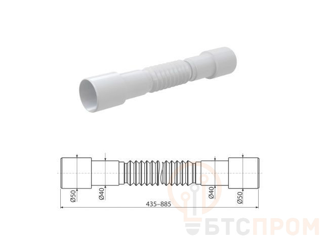 Длина гофрированного шланга может изменяться в пределах от 400 до 850 мм.