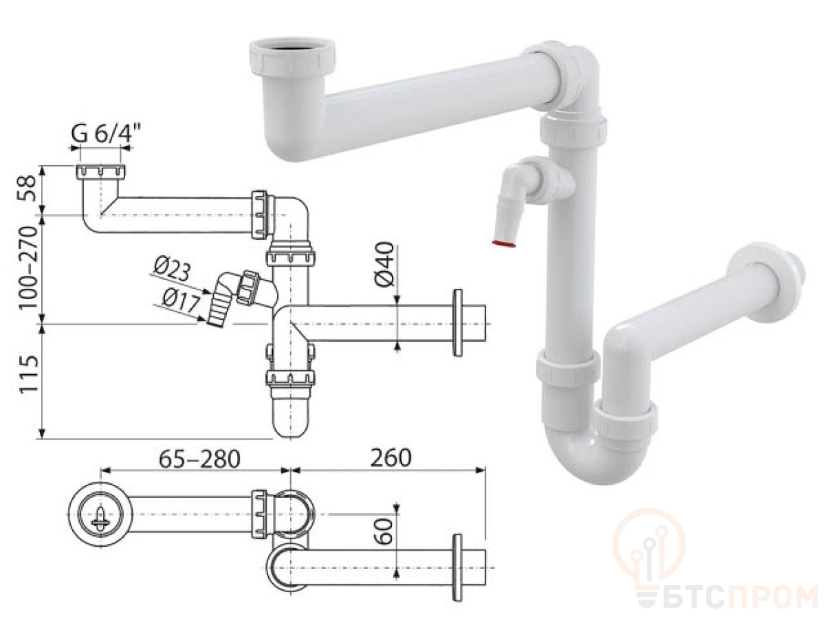 Гидрозатвор: 64 мм;