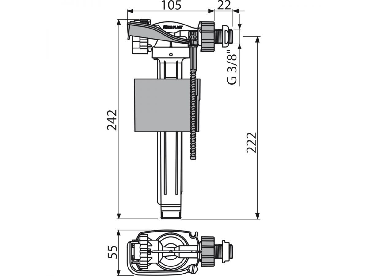 Впускной механизм с бок. подвод. и металл. резьбой для пластик. бачков и сист.инсталляции, Alcaplast A160P-3/8