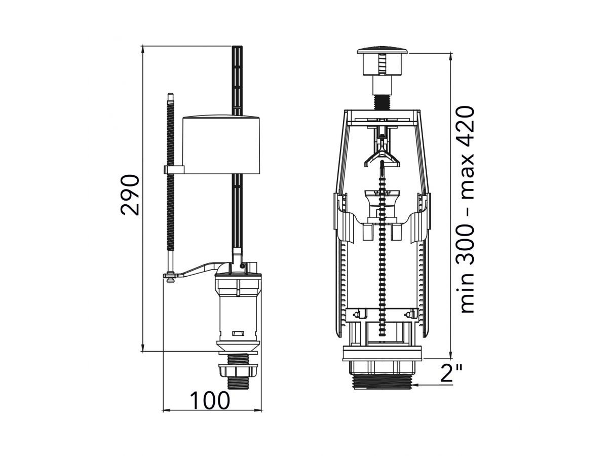 Арматура для смывного бачка c функцией СТАРТ/СТОП с клапаном нижней подачи, AV Engineering AVE129698