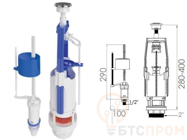 Выпускной механизм и поплавок клапана регулируются по высоте.