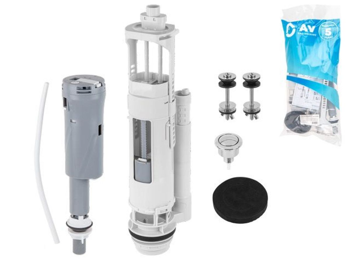 Арматура устанавливается в сливной бачок унитаза, обеспечивающая регуляцию наполнения и слива воды. Также арматура обеспечивает герметичное удерживание воды в бачке. Впускной механизм в арматуре имеет инновационный фильтр с верхней вставкой, который удобно извлекать для очистки. Во время работы весь осадок, проходящий через фильтр, промывается и вытекает из арматуры, таким образом, клапан может работать стабильно даже под мутной водой. Простая и быстрая установка. Уникальная микрорегулировка по 1.8мм на верный уровень воды, по мере необходимости. Стабильная работа под высоким давлением в 20 Бар. Арматура универсальная, подходит для всех типов унитазов. В двухрежимной имеется 2 кнопки - слив на 13 и на 23 всего объема бачка.