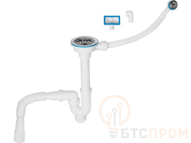 Сифон для кухни прямоточный с аварийным выходом, выпуск 3 1/2, 1 1/2"-40/50мм, AV Engineering AVE129741E