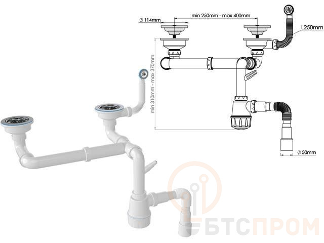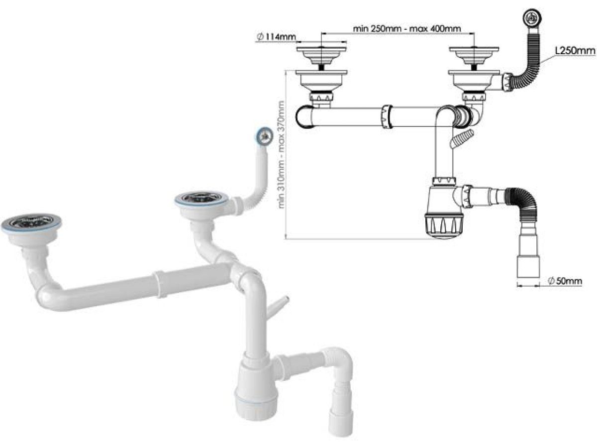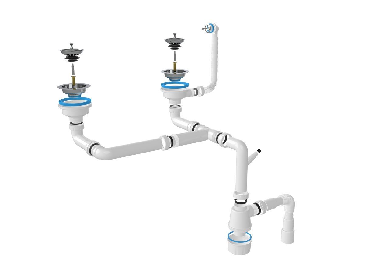 Сифон для кухни с круглым переливом, двойной, выпуски 3 1/2, с гибкой трубой 1 1/2 - 40/50мм, AV Eng (AV Engineering) AVE129763