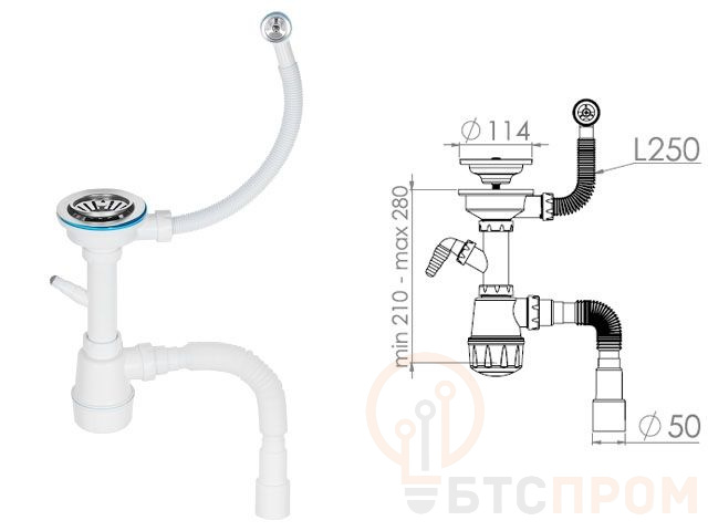 Сифон для керамогранитной мойки бутылочного типа, с большой колбой