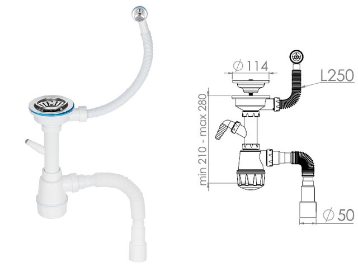 Выход в канализацию: гибкая труба 1 1/2- 40-50 мм.