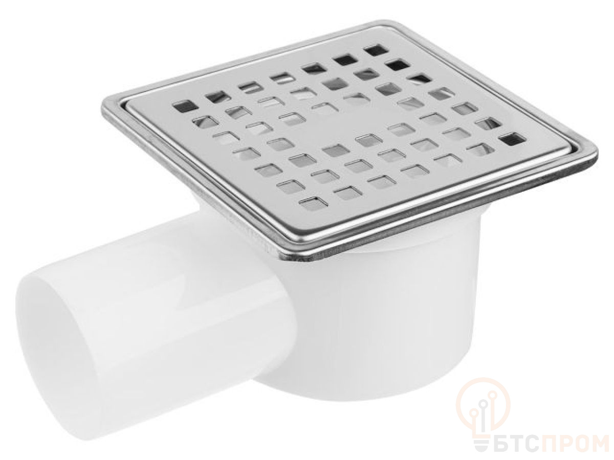 Сливной трап горизонтальный D50 с сухим затвором, с рамкой, решетка нерж. 100х100 мм, AV Engineering AVE5010103