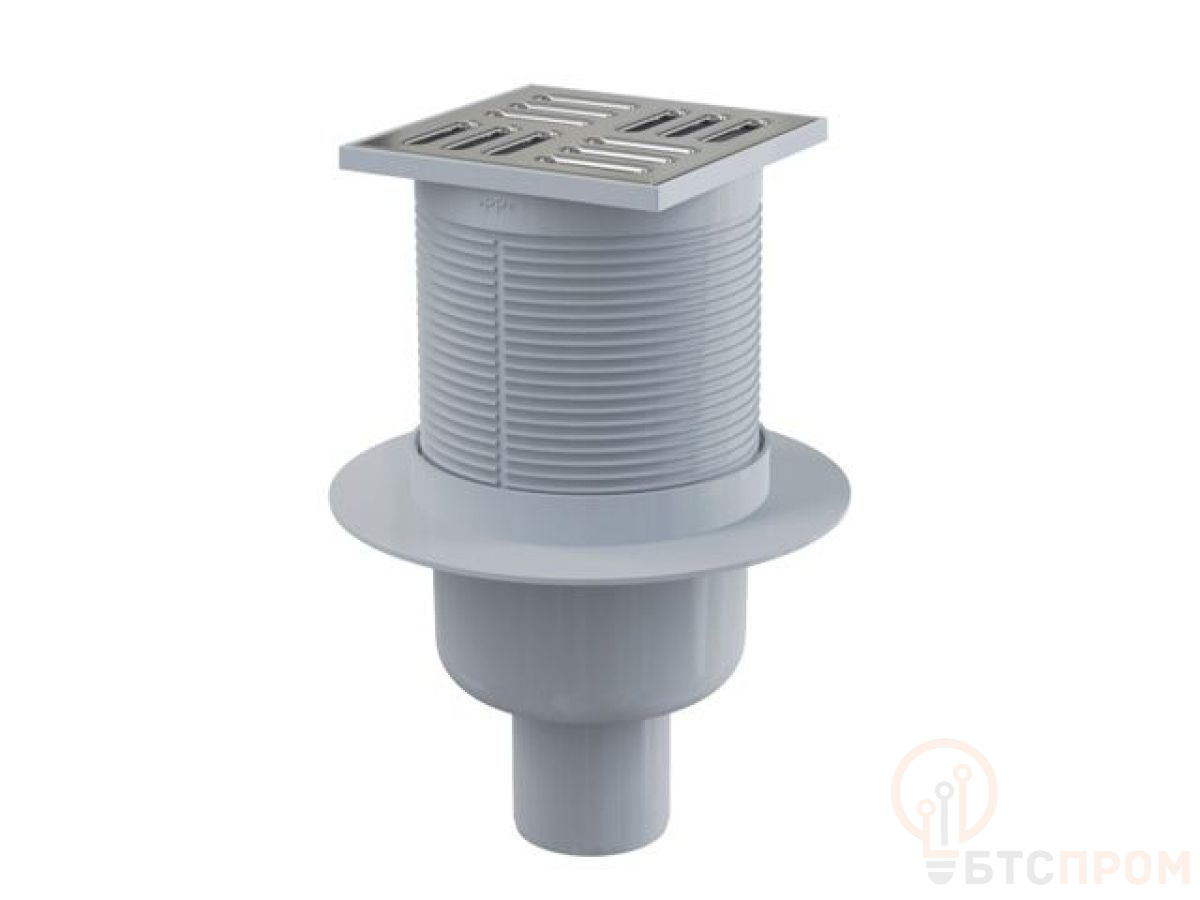Сливной трап 105х105/50, подводка – прямая, решетка – нержавеющая сталь, гидрозатвор – комбиниров (Alcaplast) APV32-BL-01
