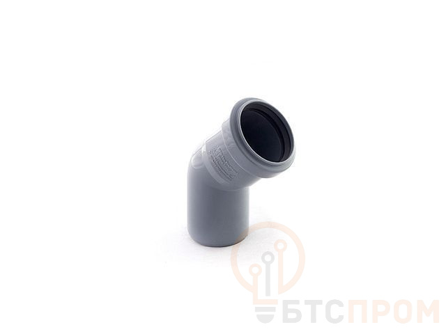 Отвод канализационный диаметром 40 мм под углом 45 градусов для монтажа систем внутренней канализации.