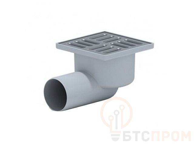 Сливной трап гориз. 50 TQ5102 сух.затв., реш.нерж.. 100х100 мм, сер., РТП (Для внутренней канализации) (РосТурПласт) 11400