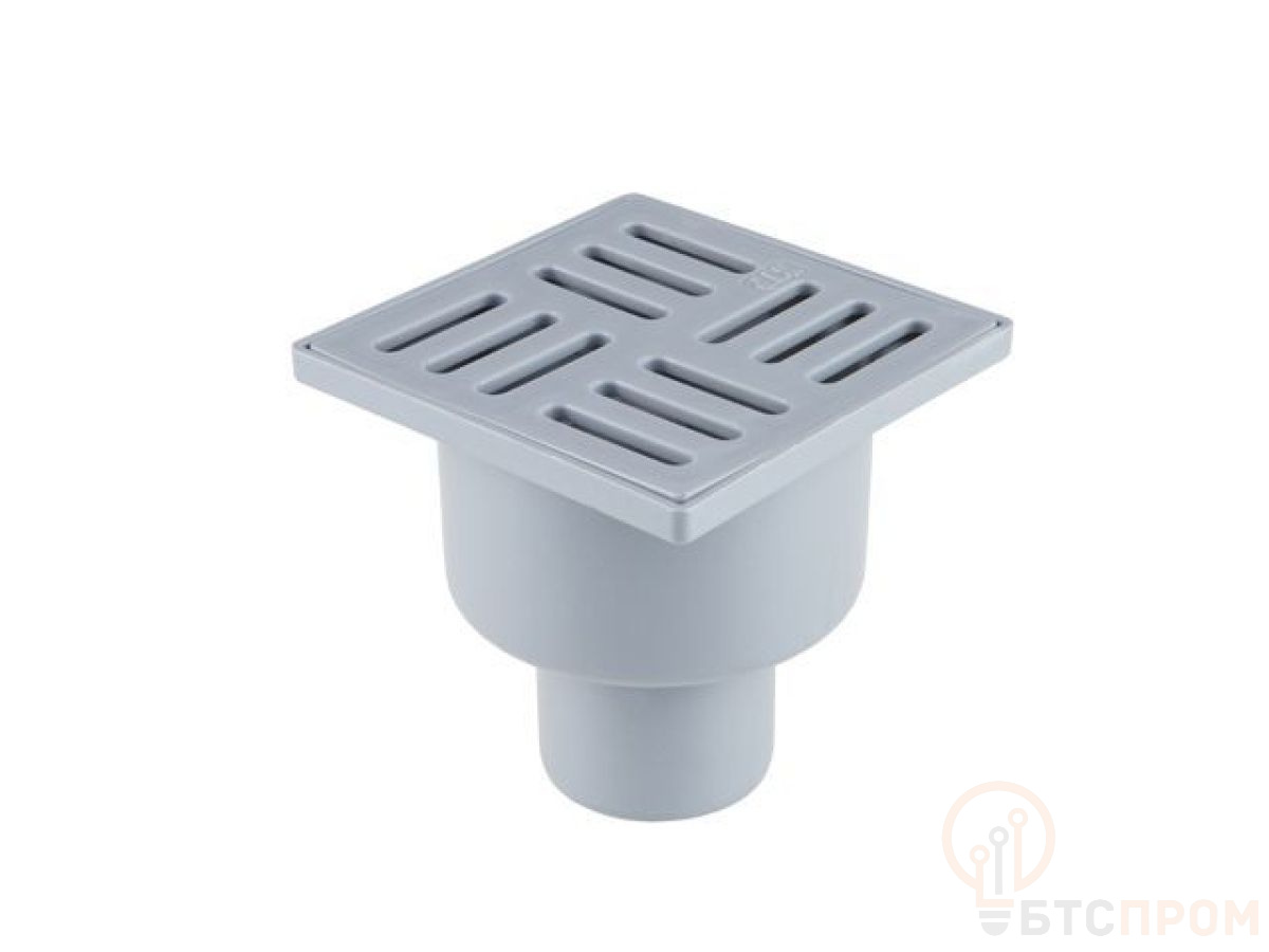 Сливной трап верт. 50 сух.затв., реш.пласт. 100х100 мм, сер. РТП (Для внутренней канализации) (РосТурПласт) 36587