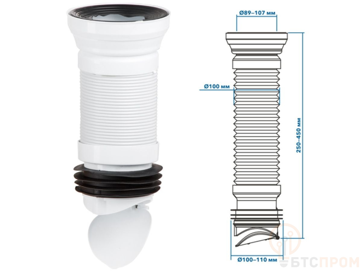 Удлинитель гибкий для унитаза, армированный 450 мм, с клапаном обратного хода, AV Engineering (Гофра для унитаза с обратным клапаном) AVE129501