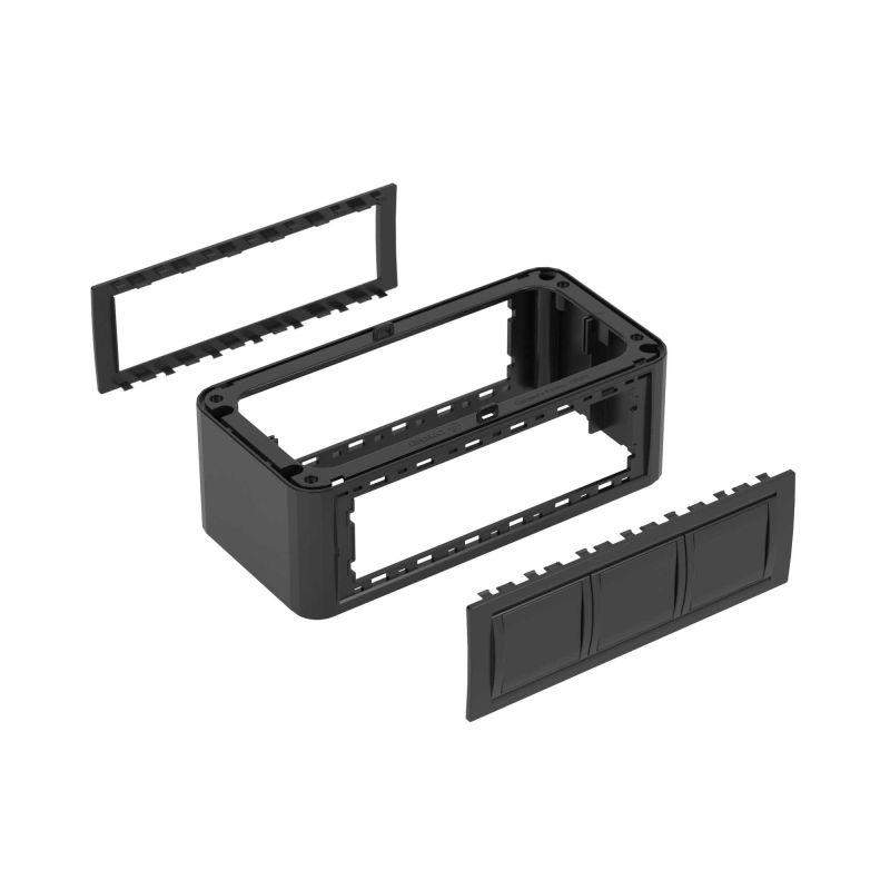 Вертикальное расширение напольной башенки BUS. Назначение: вертикальное расширение напольной башенки BUS. Характеристики: монтаж ЭУИ с 2 сторон, по 6 модулей; монтаж ЭУИ серий "Viva" и "45х45 мм" в соответствующих каркасах. Комплект поставки: стойка - 1 шт.; саморезы для монтажа стойки к основанию базы - 4 шт.; внутренняя центральная перегородка - 1 шт.; рамка на 6 модулей - 2 шт.; заглушка сплошная на 6 модулей (накладка для декора неиспользуемого проема башенки) - 1 шт. Цвет черный