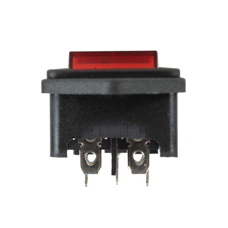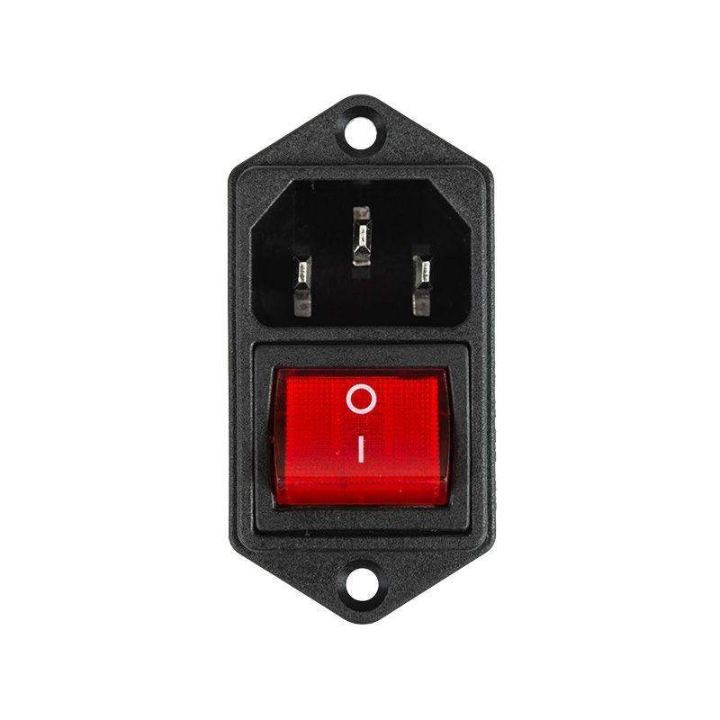 Выключатель клавишный 250 V 6 А (4с) ON-OFF красный с подсветкой и штекером C14 3PIN предназначен для коммутации электрических цепей переменного тока напряжением до 250 В. Комбинация выключателя с разъемом питания применяется в качестве комплектующих изделий различного электрооборудования (на блоках питания). Клавишный переключатель имеет два положения. Принцип действия основан на перемещении клавиши в одну из позиций. Для переключения в нужное положение требуется приложить некоторые усилия на клавишу. Монтаж осуществляется без применения винтов на плоских панелях толщиной от 0.8 мм до 3 мм. Подключение контактов осуществляется плоской клеммой, либо с помощью пайки. Основные характеристики: Номинальное напряжение: 250 В Предельное напряжение: 1500 VАС не более 1 минуты Номинальный ток выключателя: 6A (250В) Номинальный ток разъема питания:10A (250В) Контактное сопротивление: не более 35 мОм Тип переключения: ON-OFF Количество контактных групп: 2 Количество контактов в контактной группе: 2 Фиксация положений: да Индикатор коммутационных положений: красный Тип разъема питания: тип C14 3PIN Рабочая температура: –25...+85 ? Ресурс: 10 000 циклов.