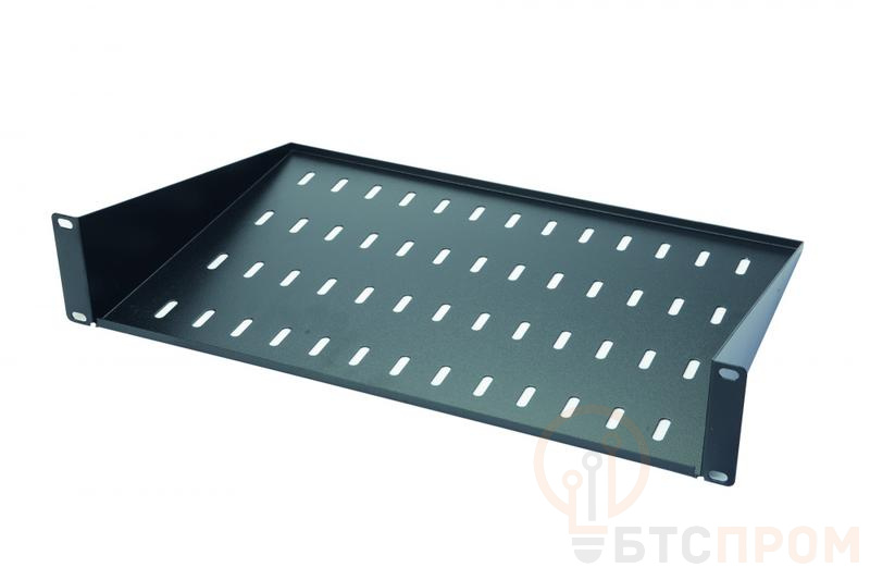 Полка консольная 2U (далее – изделие) предназначена для размещения нестандартного оборудования, которое требует периодического обслуживания, а также для временного размещения диагностического и монтажного оборудования. Изделие изготовлено из стали 1,5 мм и выдерживает распределенную нагрузку до 15 кг. Изделие перфорированное, цвет черный RAL 9005. В состав изделия входит комплект крепежа, предназначенный для крепления полки к одной паре вертикальных 19” направляющих по консольной схеме.
