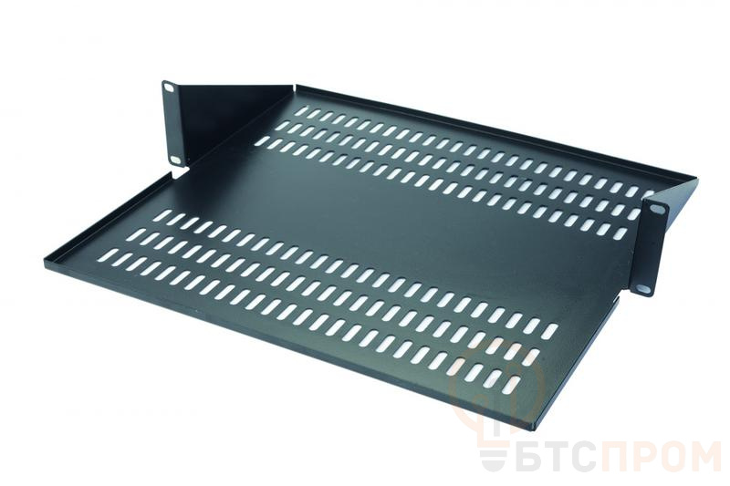 Полка консольная 2U с центральным креплением (далее – изделие) предназначена для размещения нестандартного оборудования, которое требует периодического обслуживания, а также для временного размещения диагностического и монтажного оборудования. Изделие изготовлено из стали 1,5 мм и выдерживает распределенную нагрузку до 15 кг. Изделие перфорированное, цвет черный RAL 9005. В состав изделия входит комплект крепежа, предназначенный для крепления полки к одной паре вертикальных 19” направляющих по консольной схеме.