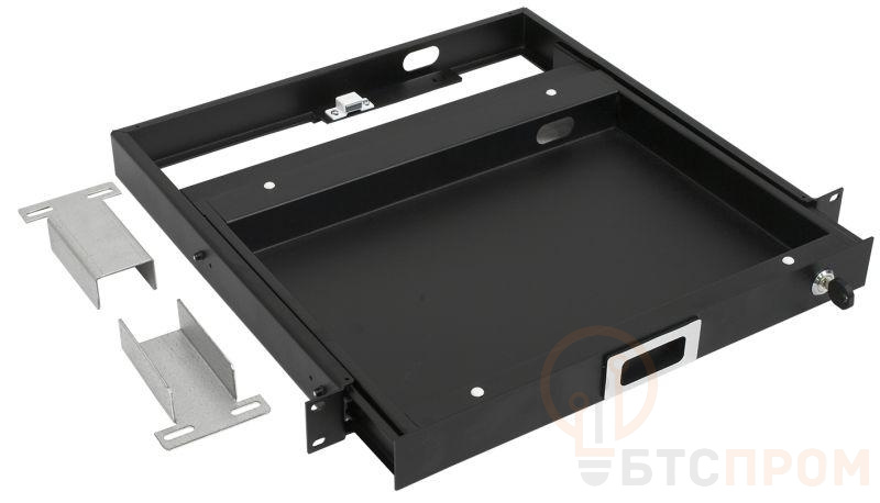 Полка выдвижная клавиатурная стандарта 19" устанавливается на 19-ти дюймовые монтажные профили и предназначен для размещения компьютерной клавиатуры, для администрирования оборудования установленного в серверный шкаф 19". Полка имеет высоту 1U и оснащена выдвижным телескопическим механизмом на основе роликовых кассет, а также замком с индивидуальным ключом.