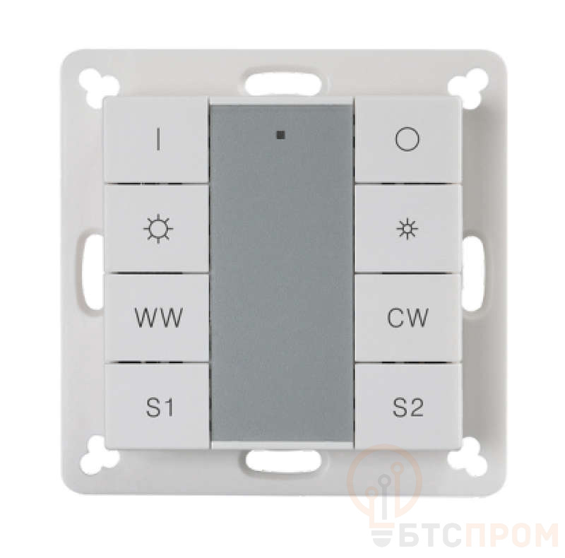 Кнопочные DALI панели позволяют выполнять ручное управление: включение, выключение, диммирование группами светильников. На стену в подрозеточную коробку Пластиковый корпус