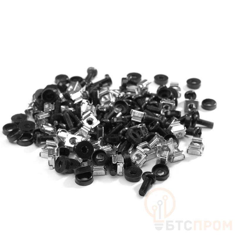 Винт: М6 - 50 шт, Цвет винта: черный, Пластиковая шайба - 50 шт, Цвет пластиковой шайбы: черный, Оцинкованная закладная гайка - 50 шт