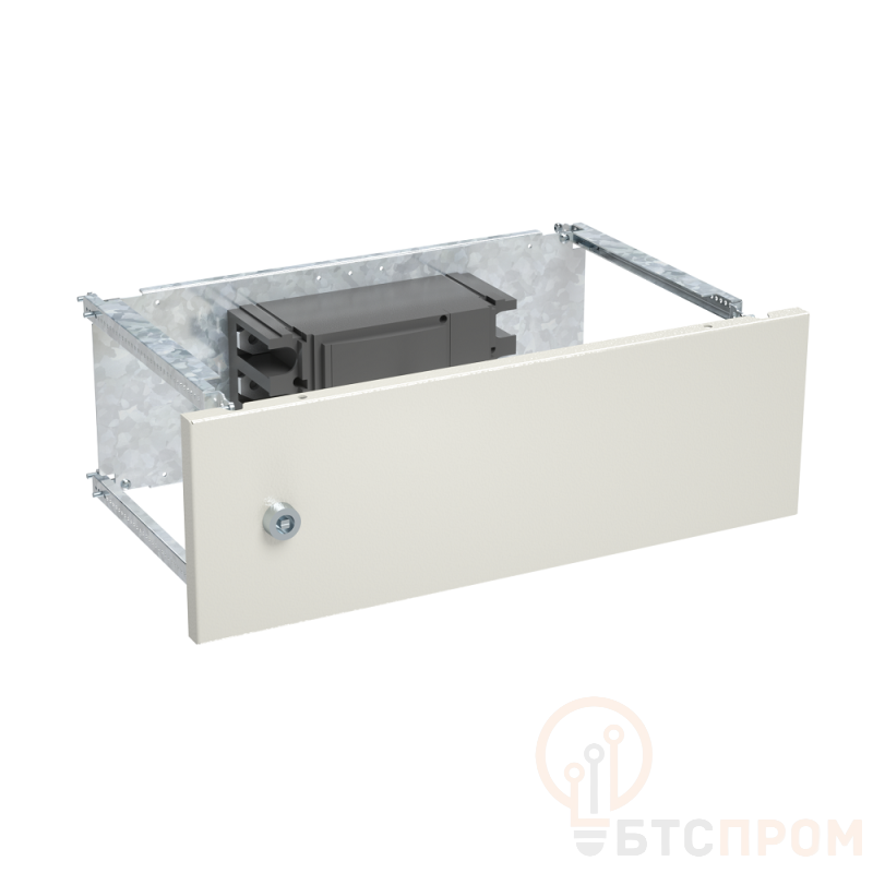 Состоит из внешней двери с замками под ключ с двойной бородкой, монтажной панели, 4 установочных профилей с кронштейнами, монтажных аксессуаров.